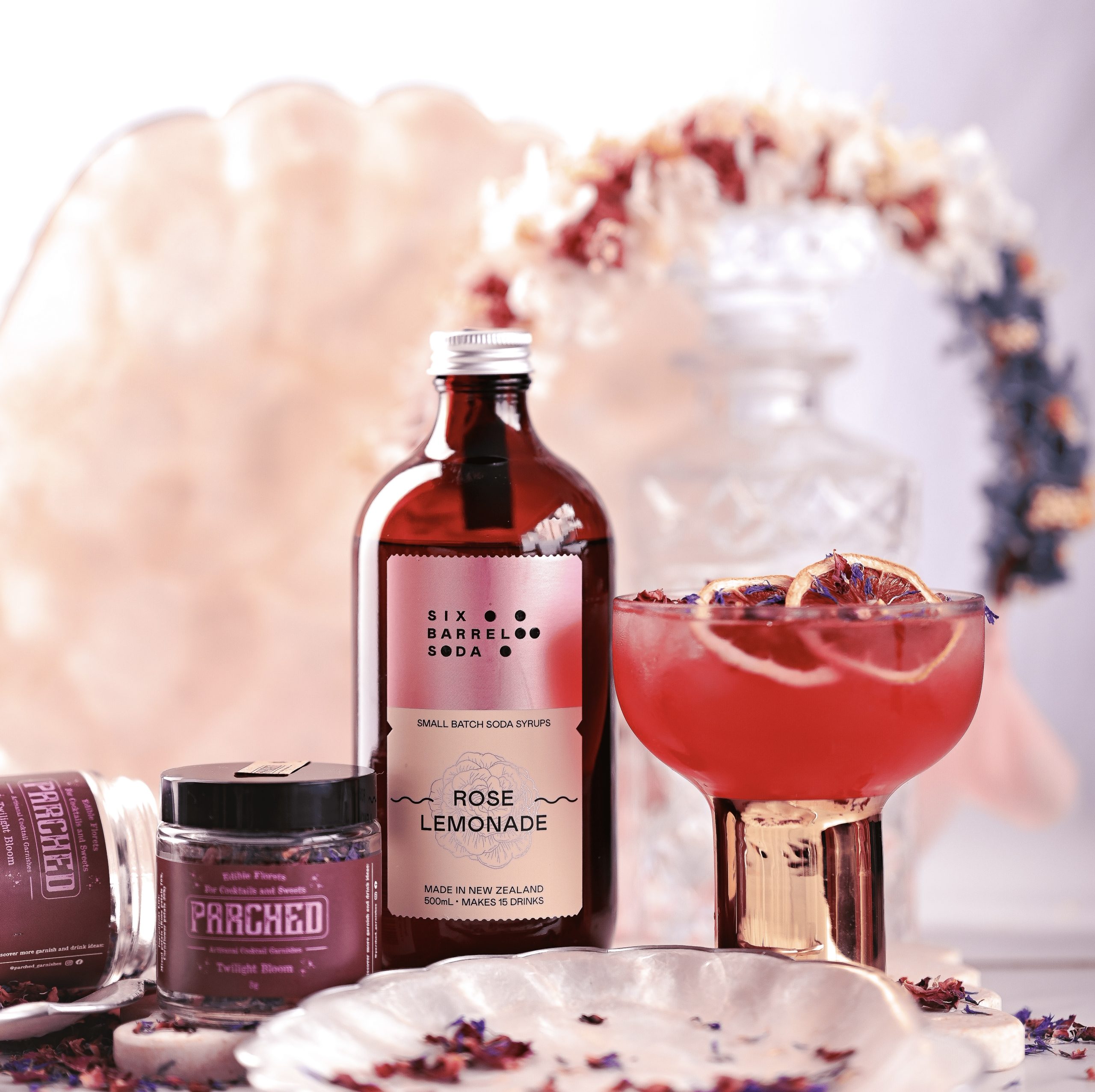 Rose & Bloom! the sweet treat for all your cocktails or mocktails, garnish with Parched Twilight Bloom and your garden party drink is complete!